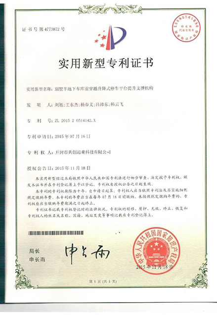 公司高度重視科技研發(fā),截止到2023年,已累計獲得多項發(fā)明專利、實用新型專利、外觀專利、軟件著作權。2012年,公司實驗室被認定為開封市立體停車設備工程技術研究中心。2018年以來,公司先后獲得“河南省高新技術企業(yè)”、“科技型中小企業(yè)”、“河南省專精特新企業(yè)”等稱號。2021年,公司與鄭州大學開展校企合作,聯(lián)合成立了“城市靜態(tài)智慧交通研究院”,公司投運的智能停車場、停車產(chǎn)業(yè)大數(shù)據(jù)中心、立體停車設備工程技術研究中心被鄭州大學確定為“實踐教學基地”,形成了科研助力企業(yè)與企業(yè)反哺科研的良性互動,樹立了校企產(chǎn)學研合作的典范。